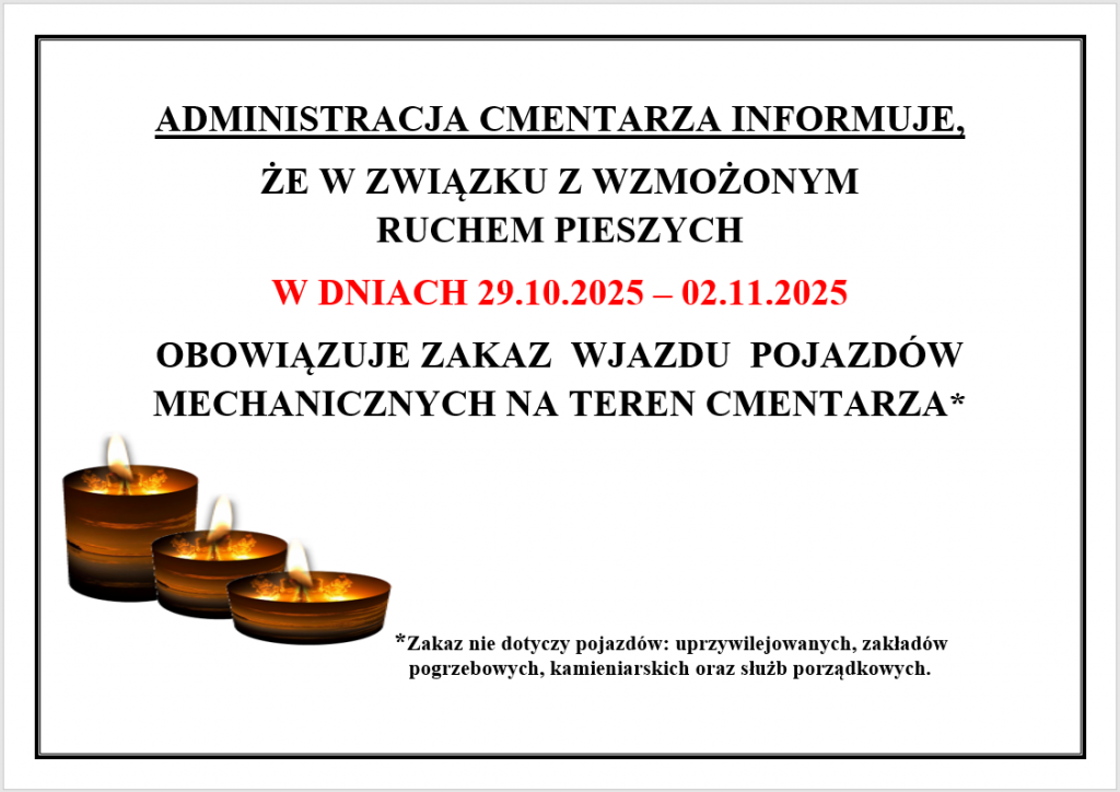 Wyznaczone stanowiska zostały przeznaczone do wydzierżawienia na cele prowadzenia handlu w okresie Wszystkich Świętych.
